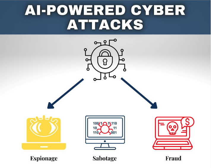 National Security Threats: AI-powered attacks can target government agencies and military systems, posing a threat to national security.